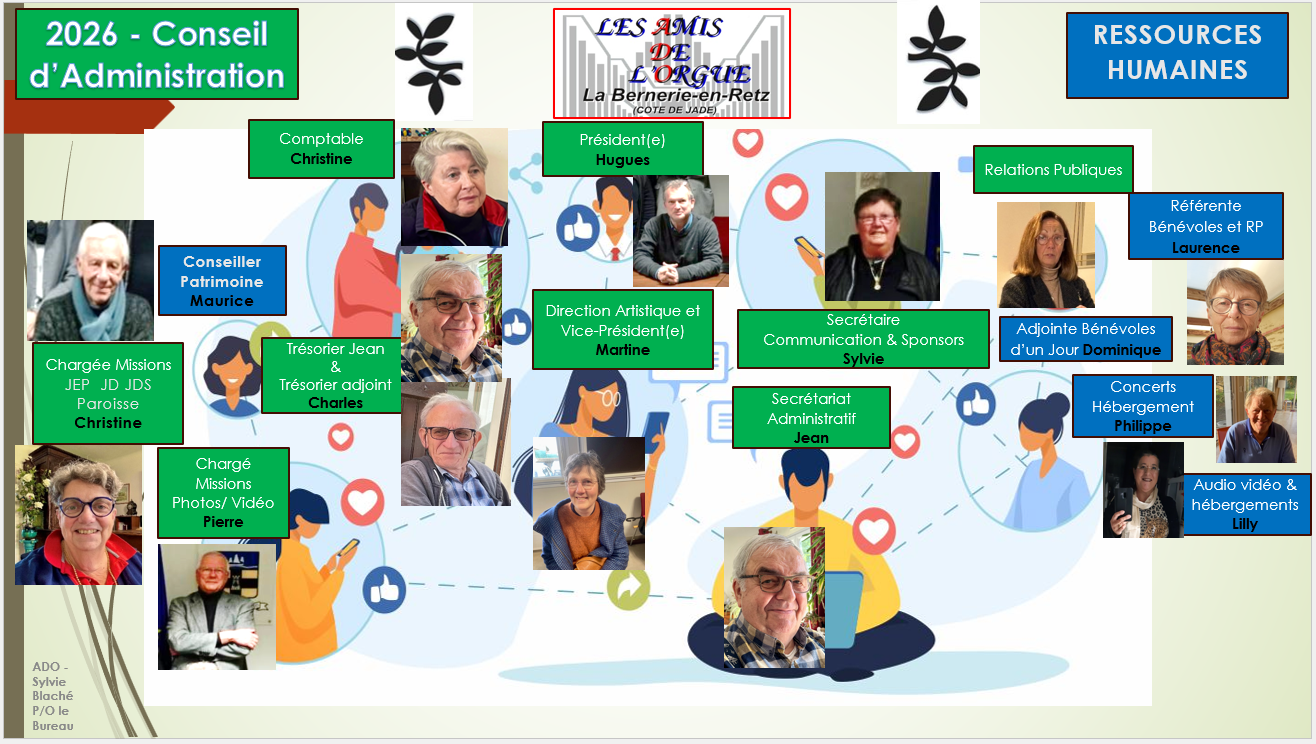 - Et ponctuellement : Marie-Christine EMINET Bénévole d'un Jour, Enzo DUMONT aménagement de l'église, Lilly HENRY Hébergement, Audio, Vidéo, Philippe HURARD, Hébergement...